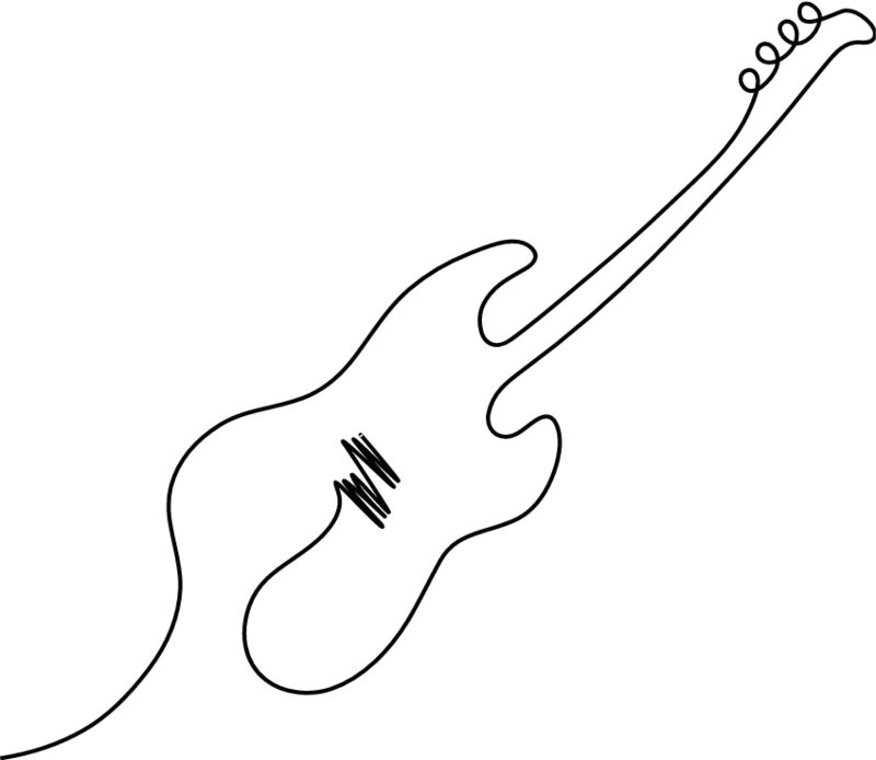 Bass guitar continuous line drawing black