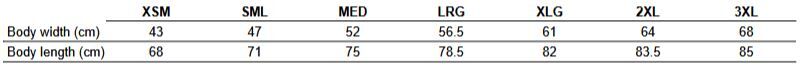 Sizes available from XXS TO 3XL